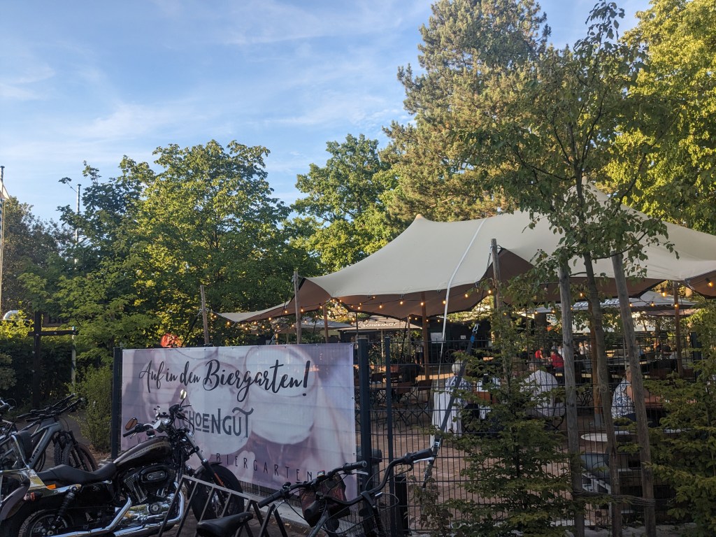 Der etwas versteckt gelegene Biergarten im schönen Nürnberger Stadtteil Eibach, besticht trotz seiner zentralen Lage, durch eine ländliche und urige Atmosphäre. Man sitzt idyllisch unter großen alten Bäumen, eingefasst von schönen bepflanzten Kübeln. Die Speisekarte ist knackig kurz gehalten, was auch dem Personalmangel geschuldet ist, so der nette Gastronom. Die Fleischwaren kommen aus der ‚Bäuerlichen Erzeugergemeinschaft Schwäbisch Hall‘ und aus einer Biometzgerei in Fürth. Ob „aU“ – ein ungespundetes, Helles, Weizen oder Radler, Bier gibt es von den Traditionsbrauereien Mahrs, Schanze und Gutmann.
