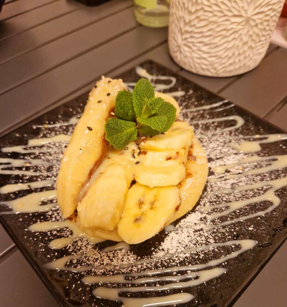Der Nachtisch war dann noch ein supersüßer Abschluss, denn wir gönnten uns einen Sweet Bao Bun mit Banane und richtig viel Nutella! 🥟🍌🍫