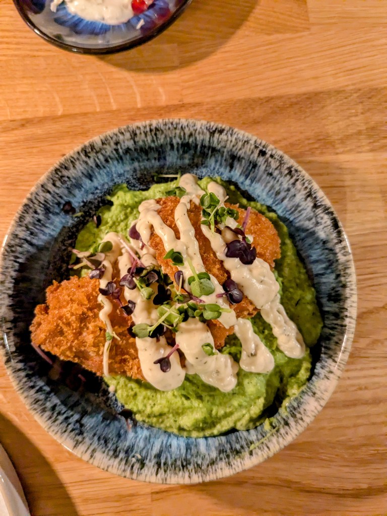Die Tellersprache und Anrichteweise hat uns durchweg begeistert. Stilvolle Schälchen mit buntem, knackigem Gemüse, köstlichen Toppings oder vorzüglicher Knusperpanade. Jeder konnte von jedem probieren und so entstand eine gesellige Atmosphäre. Jedes der Gerichte schmeckte uns vorzüglich.